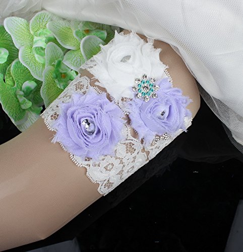 Prettybabyonline Women's Floral Leg Garter Belt Wedding Garter Set (L, Lavender)
