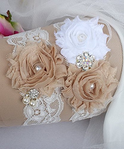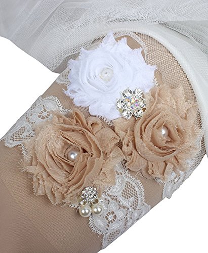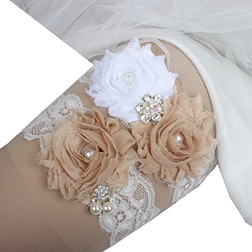 Prettybabyonline Women's Bridal Leg Garter Belt Wedding Garters (XL, Champagne)