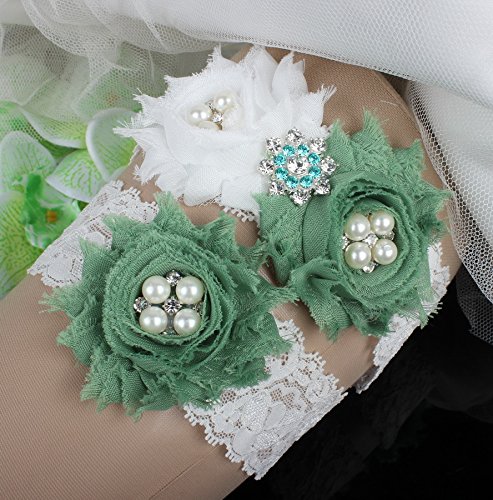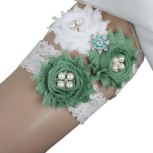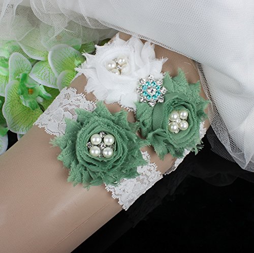 Prettybabyonline Women's Floral Bridal Leg Garter Belt Wedding Garter Set (L, Oliver Green)