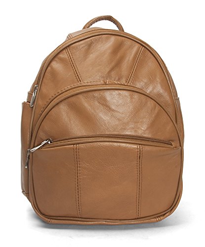 -. Feature : 3 section pouch in the front. 2 pocket pouch on the side. 1 in the back / Dimensions : 9 inches by 10.5 inches by 3 inches / Genuine Lambskin Leather / Zipper closure backpack strap / Second front compartment has card complimentary design