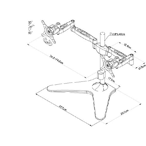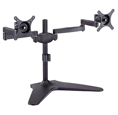 Elitech Aluminum Alloy Dual Monitor Stand, Articulating Arm, Double Arms Fully Adjustable, Free Standing Table Desk LED or LCD Mount for Upto 27" Screens, Broader Base, Black EL-025