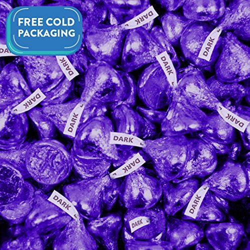 -. Feature : Foil Color: Purple bulk HERSHEY'S KISSES candy / Flavor: Dark Chocolate / Content: Approximately 225 HERSHEY'S Dark Chocolate KISSES / Container: Family Bag / Net Weight: 2.28 lbs