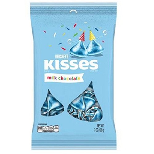 -. Title : Hershey's "Birthday" Kisses 7 oz Bag Light Blue