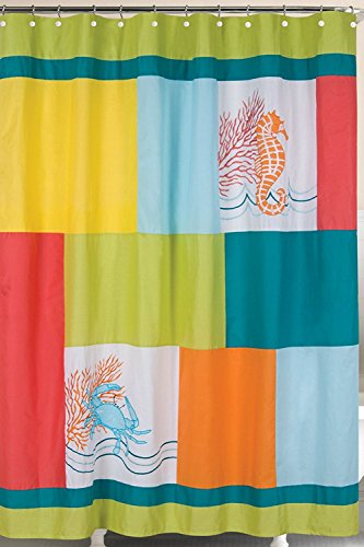 Tropic Escape Seahorse Blue Crab Coral 72 x 72 Inch Bath Shower Curtain