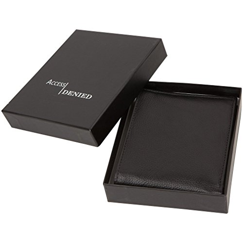 -. Binding : Apparel -. Brand : Access Denied -. ClothingSize : O M US -. Department : mens -. Feature : 12 Secure RFID Blocking Credit Card Slots, Genuine Leather Wallets / Wing section features hidden pocket with ID Window / Protect your Credit and Debit card from Wireless RFID theft / Access Denied® RFID Blocking technology meets US Government FIPS-201 Security Standards / Dimensions: 4.37" x 3.5" x .37" when folded -. PackageQuantity : 1 -. ProductGroup : Apparel -. ProductTypeName : ACCESSORY -. Size : O M US -. Title : Access Denied Mens RFID Blocking Wallet Genuine Leather Bifold Slim Wing