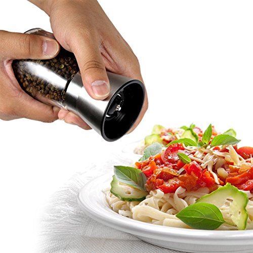 BEAUTIFUL AND FUNCTIONAL ★ This Glass and Stainless Steel Salt and Pepper Grinder with Infinitely Adjustable Ceramic Burrs is designed to not only look great, but also to deliver just the right amount of salt and pepper where you need it for years to come.