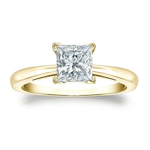 -. Title : 14k Gold P.R.Incess-cut Diamond V-Prong Solitaire Ring (1/4 cttw, H-I, I1-I2) Size 4-9