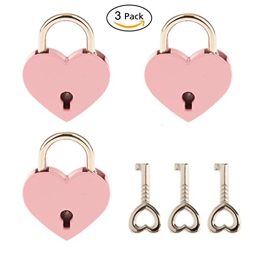 3 Pcs Small Metal Heart Shaped Padlock Mini Lock with Key for Jewelry Storage Box Diary Book,Pink