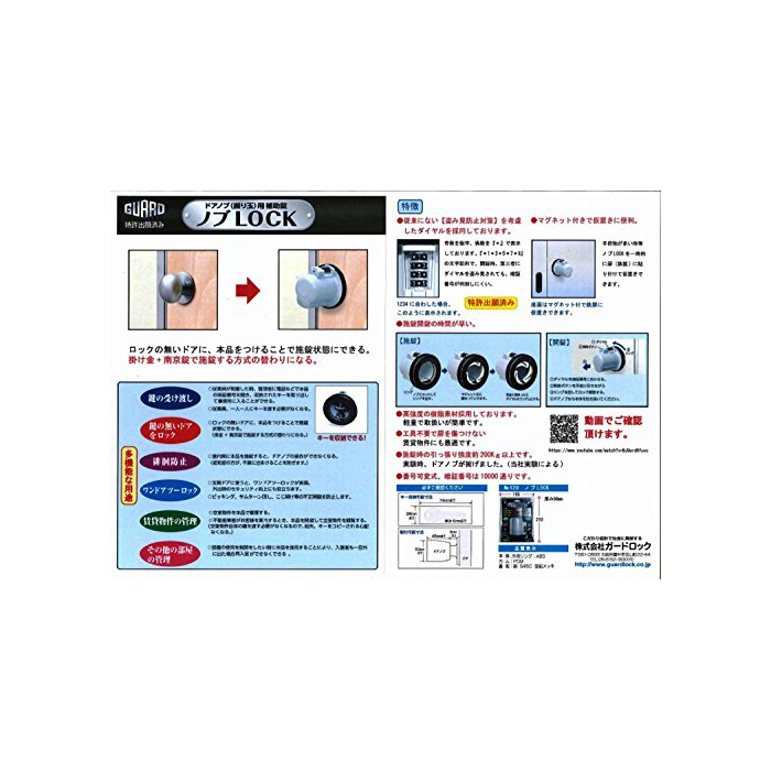 원본상품명:ガドロック ドアノブ(握り玉)用補助錠 ノブ LOCK 620