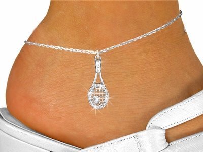 -. Title : Crystal Tennis Racquet Charm & Anklet