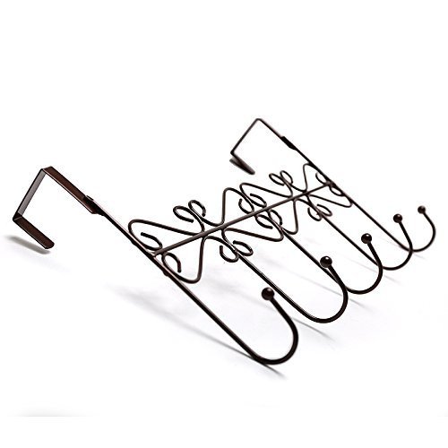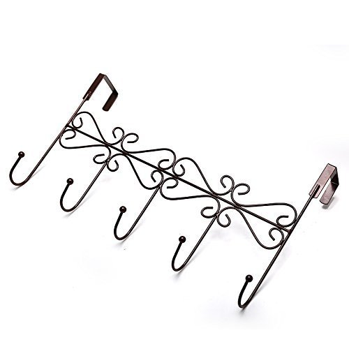 Over the Door 5 Hook Rack - Decorative Organizer Hooks for Clothes, Coat, Hat, Belt, Towels - Stylish Over Door Hanger for Home or Office Use