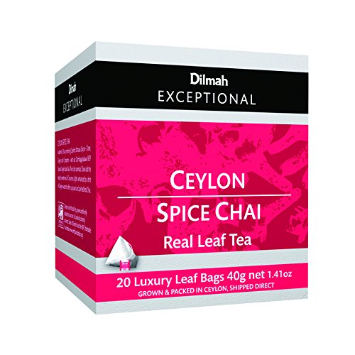 -. Binding : Misc. -. Brand : Dilmah -. EAN : 0780658144331 -. Feature : Single origin,100% pure Ceylon tea / Packed at source, garden fresh and rich in antioxidants / Sold and savored in over 100 countries around the world. / Manufactured in a traditional and orthodox way / World's first truly ethical tea brand -. IsAdultProduct : 0 -. Label : Dilmah -. Manufacturer : Dilmah -. ProductGroup : Grocery -. ProductTypeName : GROCERY -. Publisher : Dilmah -. Studio : Dilmah -. Title : Dilmah Ceylon Spice Chai (Pack of 6) -. UPC : 780658144331