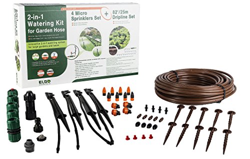 Each kit includes 4 micro sprinklers with interchangeable nozzles for half/full circle watering, 4 quick-up connectors and an 82’ roll of 8mm drip line. - Supporting component hardware included