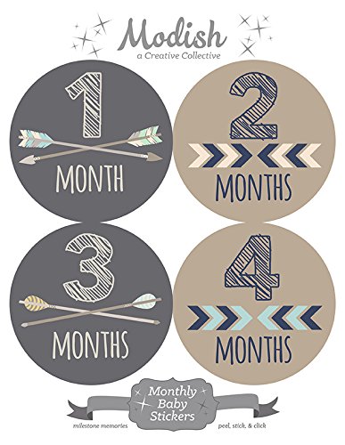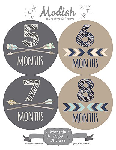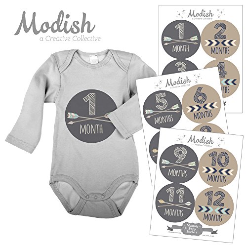 Modish Labels, 12 Monthly Baby Stickers, Baby Month Stickers Boy, Tribal, Arrows, Chevron, Baby Book Keepsake, Baby Shower Gift