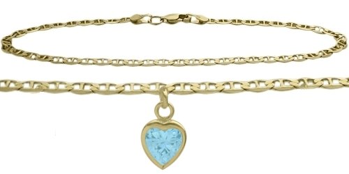 -. Title : 14K Yellow Gold Mariner Anklet with Genuine Blue Topaz Heart Charm