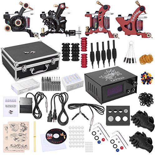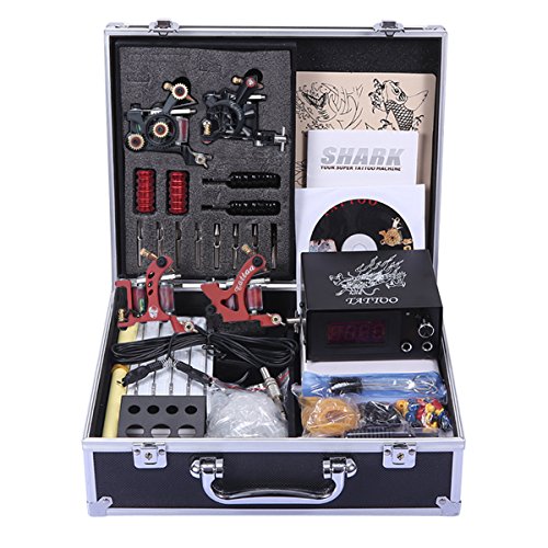 Shark® Professional Tattoo Kit 4 Machines Gun Carry Case With Key Power Supply Needles Grips Tips