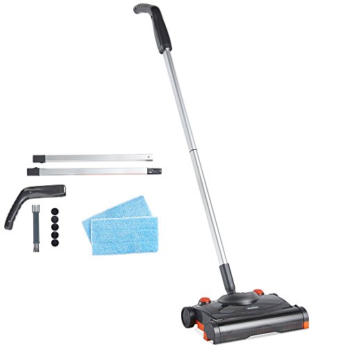Studio : DOMU Brands LLC Publisher : DOMU Brands LLC Binding : Kitchen Product Description VonHaus Electric Floor Sweeper Essential for busy family homes, the battery-powered VonHaus floor sweeper offers quick, cordless cleaning. Whether you want to quickly clean up spillages in the kitchen, or tackle pet hair on the carpet without having to get the vacuum out - this sweeper brush is convenience at its best. Cordless and lightweight, easily sweep surfaces without the restrictions of a power cable and move from room to room seamlessly. Operated by a simple one-step foot control, the brush head will start to rotate, picking up any debris it comes across and storing it in the integrated dust chamber. Continuous Cleaning With a fully charged battery, the VonHaus sweeper offers 40 minutes of uninterrupted cleaning - ideal for intermittent use throughout the week. Made for targeted hard floor or carpet cleaning - use the adjustment button to alternative the sweeper head height, or to clean up spillages, simply attach the included microfiber pads. For longer sweeping or mopping, the ridged, ergonomically designed handle offers a comfortable grip when used over prolonged periods. Compact for practical storage, the handle easily detaches and reattaches to suit. To maintain performance, regularly empty the dust tray. Simply lift the tray out, empty into the bin and return to the unit. Comes with a rechargeable battery that takes just 4 - 8 hours to fully charge. Specification Voltage: 7.2V Motor: 30W Charge Time: 4 hours Run Time: 40 minutes Charger Capacity: 500mA Battery Capacity: 2000mAh Dust Container Capacity: 250ml Sweeper Size: 44 X 12 X 8" (Height X Width X Depth) Minimal assembly required. 0
