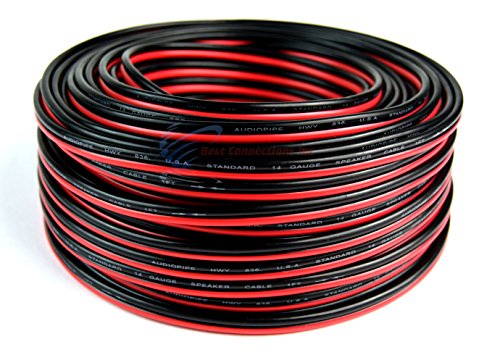 -. Binding : Electronics -. Brand : Audiopipe -. EAN : 0784644618981 -. Feature : This wire is rolled and comes in a poly bag / Features a "zip cord" style construction with color coded red and black conductors / High quality commercial grade wire / 100 feet 14 GA 2 conductor stranded copper clad black and red speaker wire / Ideal for car audio, home theater and more -. Label : Audiopipe -. Manufacturer : Audiopipe -. Model : LYSB00J36SUWC-ELECTRNCS -. MPN : LYSB00J36SUWC-ELECTRNCS -. PackageQuantity : 1 -. PartNumber : LYSB00J36SUWC-ELECTRNCS -. ProductGroup : CE -. ProductTypeName : CABLE_OR_ADAPTER -. Publisher : Audiopipe -. Studio : Audiopipe -. Title : 100' Feet 14 Gauge Red Black Stranded 2 Conductor Speaker Wire Car Home Audio Ga -. UPC : 784644618981