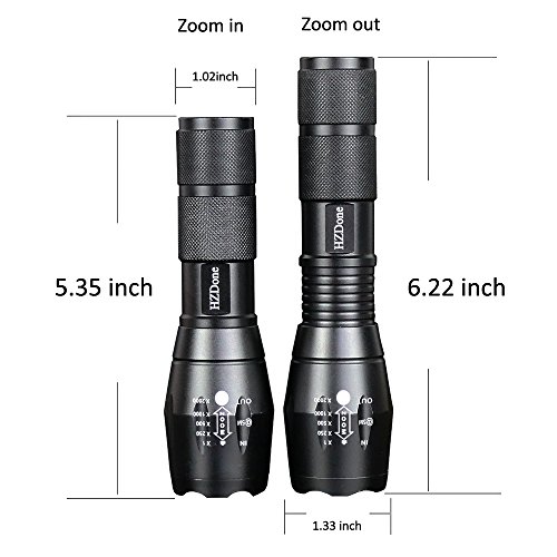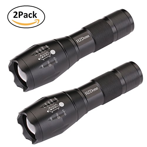 HZDone LED Tactical Flashlight FL001 [2 PACK] - High Lumen, Zoomable, 5 Modes, Water Resistant, Handheld Light - Best for Camping, ,Hiking ,Outdoor, Emergency battery powered flashlights