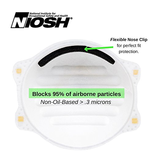 - National Institute for Occupational Safety & Health (NIOSH) approved, means the best way to protect yourself and your lungs. N95 masks remove at least 95% of non-oil-based particles down to 0.3 microns - including dust from sanding, sweeping, cutting, gardening, woodworking, grinding, sawing, and mowing.