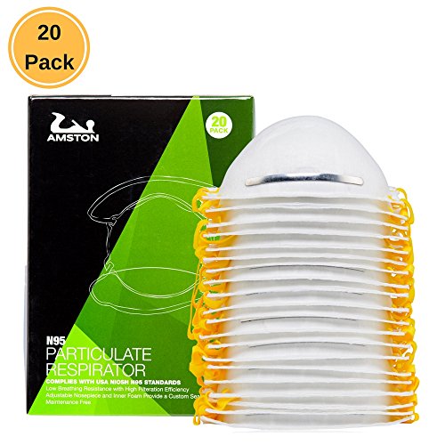 AMSTON Dust Masks, N95 NIOSH-Certified (Box of 20) Personal Protective Equipment / PPE Particulate Respirators for Construction, Home Improvement, & DIY Projects