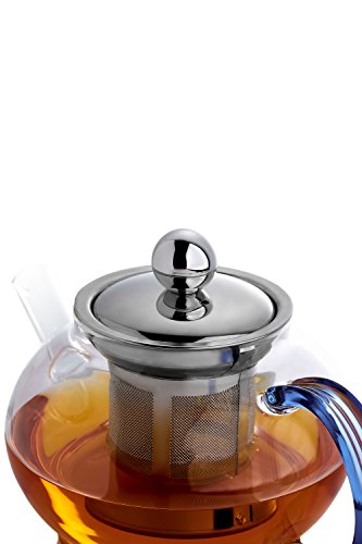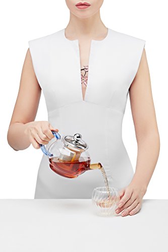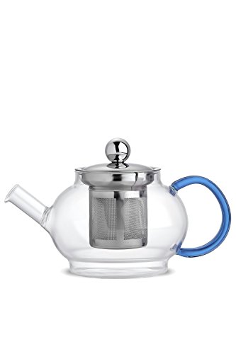 Studio : PT WorkShop Publisher : PT WorkShop Product Description The stylish round shaped glass teapot, complete with the ample sized basket infuser and detachable lid. It allows you to remove the infuser at the right time, putting you in complete control of the taste. Clear glass body lets you watch an enchanting dance of aroma and color. Detachable lid makes cleaning quick and hassle free task. Highlights ? The body of the teapot is made of tempered glass. The strainer and the lid of the teapot are made of high-quality stainless food grade steel. ? The teapot has roundish shape with a convenient side handle of light-blue color. ? Very easy to use piece of teaware, suitable for home, office, restaurants etc. ? Great gift idea and perfect choice for making flower teas since it allows you to observe all the stages of brewing. Tips for glassware use and care ? Use soft tissues or cloth to dry it - this will keep the glass shiny and prevent scratches on the surface of the glass. ? Fight water stains with baking soda or lemon and hot water. ? Do not expose glassware to sudden extremes of temperatures (placing hot teapot in the freezer is a recipe for disaster). ? Don't use metal spoons. It can lead to glass becoming weak. ? Use hot, not boiling, water. Warranty We are sure about the high quality of our products. That's why we offer the 30-day money back guarantee on all tea accessories. If you don't like the teapot for any reason, return it within 30 days and get a full refund. 0