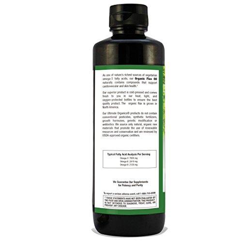 PROTECT YOUR HEART & BRAIN - Cold pressed liquid flaxseed oil is the richest natural source of omega-3 and omega-6 available from a plant source. Our hexane free and organic liquid flaxseed oil contains an average of 7,650mg of Omega-3, 2410mg of Omega-6, and 2120mg of Omega-9.