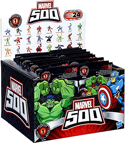-. Binding : Toy -. Brand : Marvel -. Feature : The Hulk! Captain America! Venom! Spider-Man! Punisher! Doc Ock! Iron Man! Captain America! Thor! Any of these figures could be hidden in Marvel 500 Blind Bag Micro Figures Wave 1. Each tiny figure has a unique deco and awesome sculpting. Collect them all! -. Label : Hasbro -. Manufacturer : Hasbro -. PackageQuantity : 1 -. ProductGroup : Toy -. ProductTypeName : TOYS_AND_GAMES -. Publisher : Hasbro -. Studio : Hasbro -. Title : Marvel 500 Collectible Mini Figure Wave 1 Blind Bags (Case of 24)