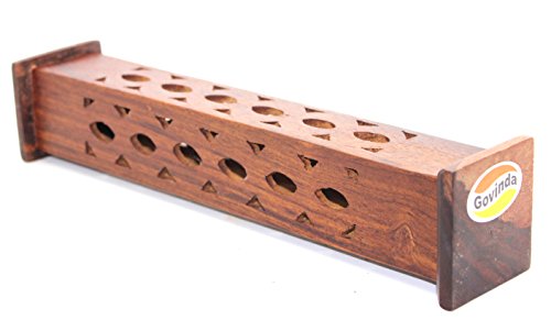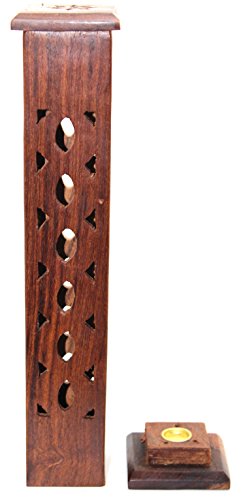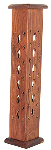 Govinda - Wooden Artisan Square Tower Incense Burner - Circular Pattern Design - 12"