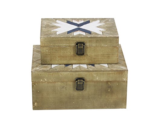 Deco 79 84303 Square Wooden Boxes (Set of 2), Brown/Black/White