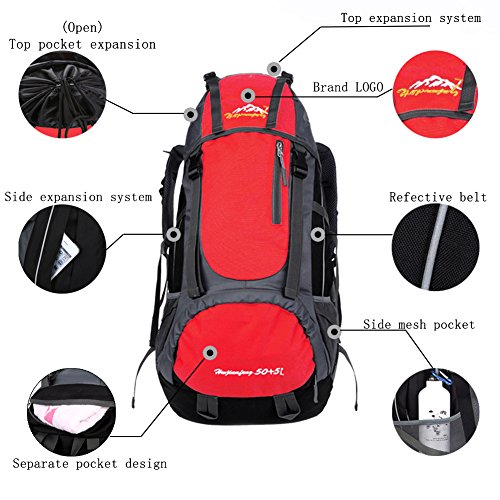-. Title : 55L Outdoor Hiking Backpack Waterproof Lightweight Large Hiking Daypack for Sports Hiking Camping Fishing Climbing Cycling Couple Backpacks With Adjustable Shoulder Strap
