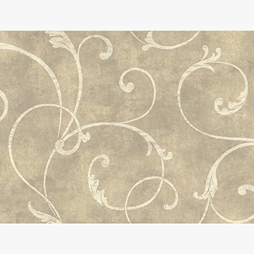 -. Title : Beige Delicate Scroll Wallpaper