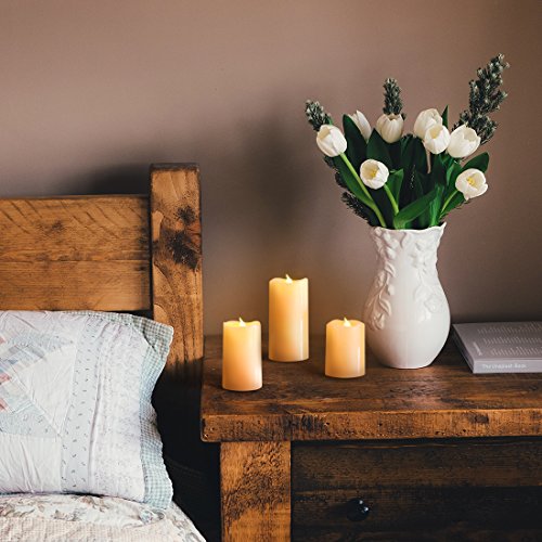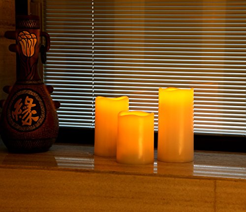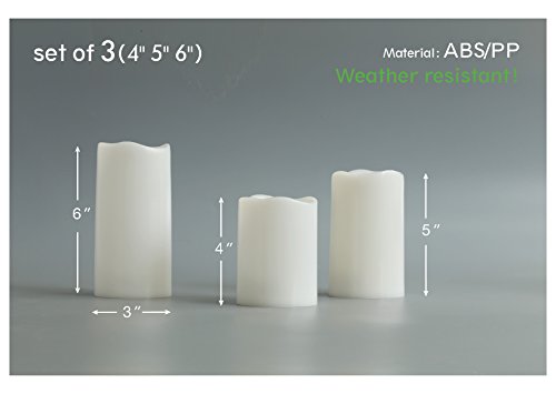 KMSdeco Outdoor Indoor LED Candles - Waterproof Battery Operated candles with Timer - Flickering Amber Yellow Flame Flameless Plastic candles - White Color - set of 3(4"5"6")