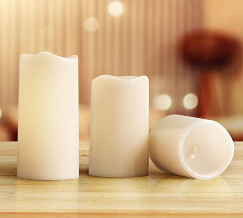 - SET OF 3 - Weatherproof & light rain proof. Perfect for special occasion & decorating indoors & outdoors. Sizes 4" H, 5" H and 6" H (3" width for all sizes)