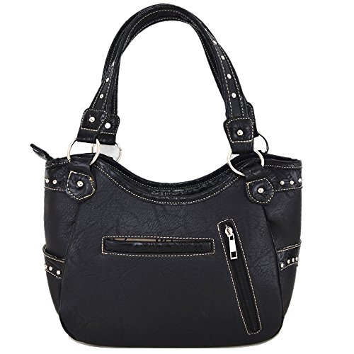 Proudly Designed in the United States | Two Magnetic Closure Pockets On Side | Silver-tone hardware | Zip Top Closure | Handbag: Back Phone pocket with zipper closure Concealed Carry Pocket ( 9'' X 7'')