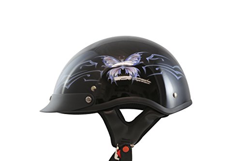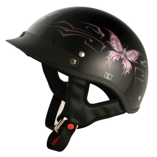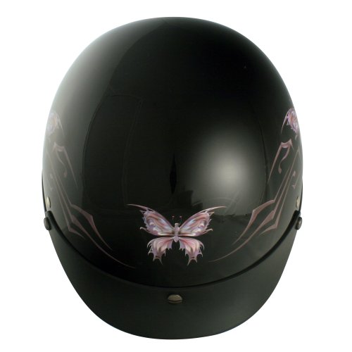 Studio : VCAN Publisher : VCAN Binding : Automotive Product Description VCAN Intricate Butterfly Gloss Black Xtra Large Cruiser Half Helmet offers a combination of style, safety and comfortable off road experience. This skid lid is created with a top quality ABS thermoplastic resin shell that meets and exceeds DOT standards. The lush interior padding provides top of the line comfort, while the double D ring secured adjustable nylon chin strap provides one of the best fits on the market today. It also includes a removable visor which is screwed in for greater durability and washable cheek pads. It comes in 15 different designs and 5 different sizes to fit you and your personality. 0