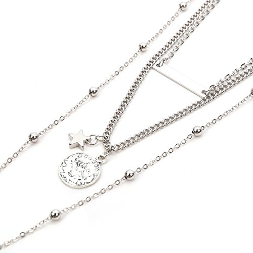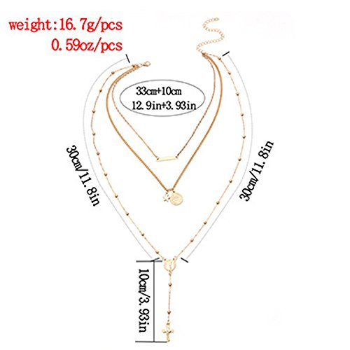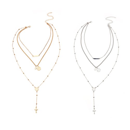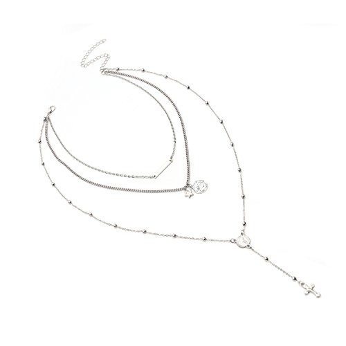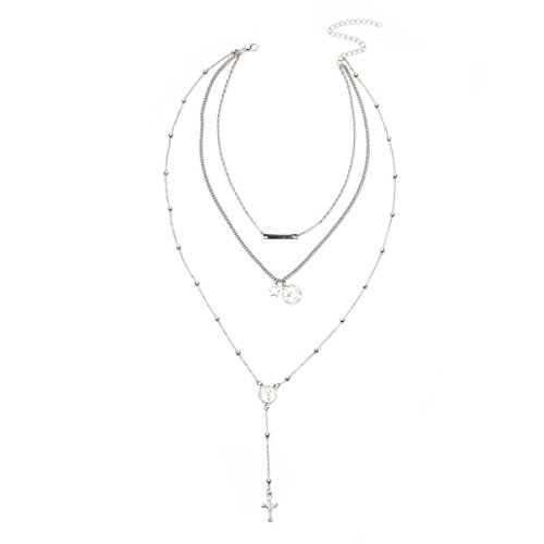 FXmimior Vintage Layered Necklace Long Chain 3 Tier Cross Coin Pendant for Women Girl (silver)
