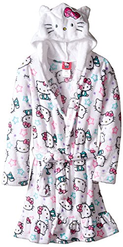 Hello Kitty Big Girls' Hooded Fleece Robe, White, Medium