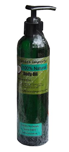 Premium 100% natural oil for conditioning your skin. Great for massage also. Contains 3% Citronella OIl to repel mosquitos in a natural way. Green Breeze Body Oil has been carefully crafted to provide a "melt on your skin" texture, provide maximum lubrication for massage, moisturize the skin, yet leave minimum oily residue. Product is made from all natural plant oils. The major component is coconut oil. Also contains grapeseed oil, soy oil, jojoba oil, and baobab oil.This combination of oils is said to have healing and properties of vitamins A, D, E, and F and well as omega fatty acids, anti-microbial, antioxidant, anti-fungal, and anti-bacterial qualities. Citronella Oil has been found to be safe and effective at repelling mosquitoos.Feature