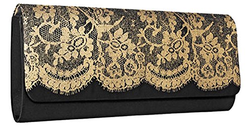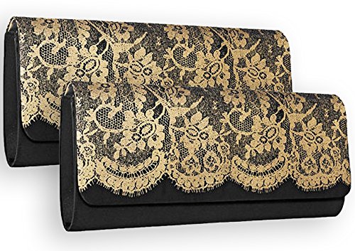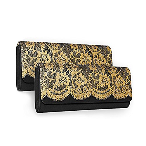Material: Satin & Lace Color: Black Product Dimensions: 10 x 1.5 x 4.8 inches Clutch Woman Wallet. Two Stunning Evening Bags included in a pack.