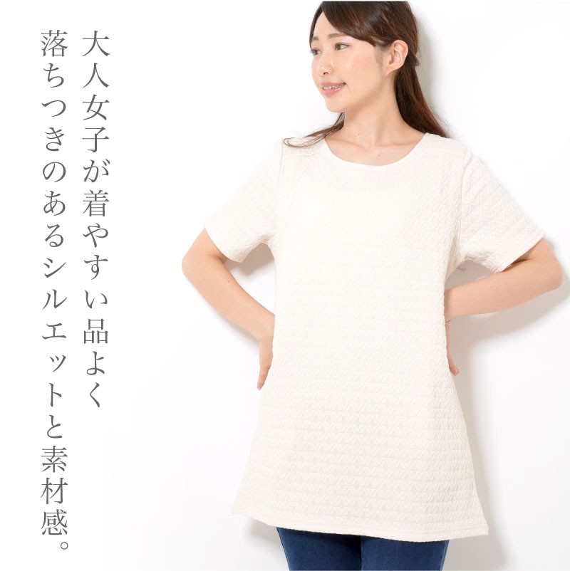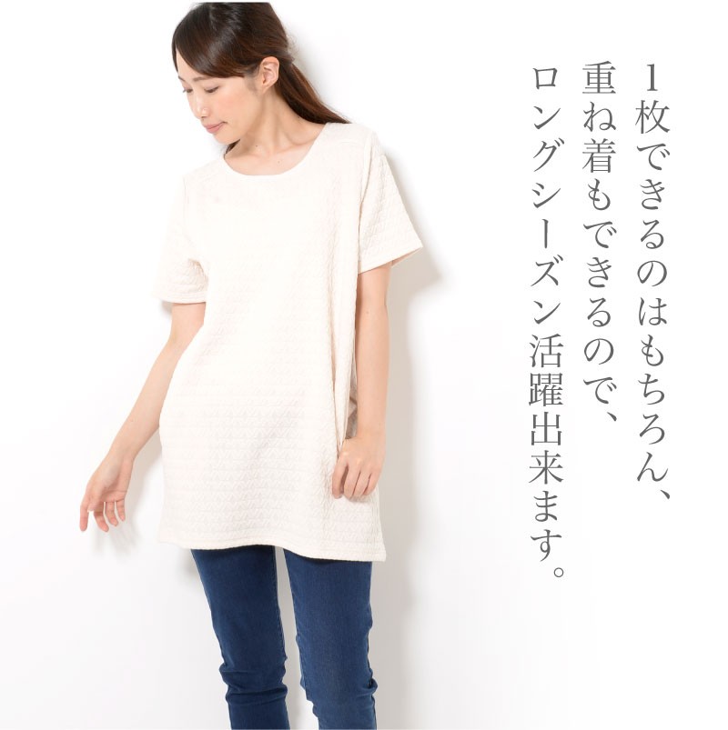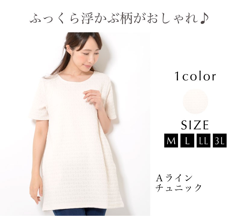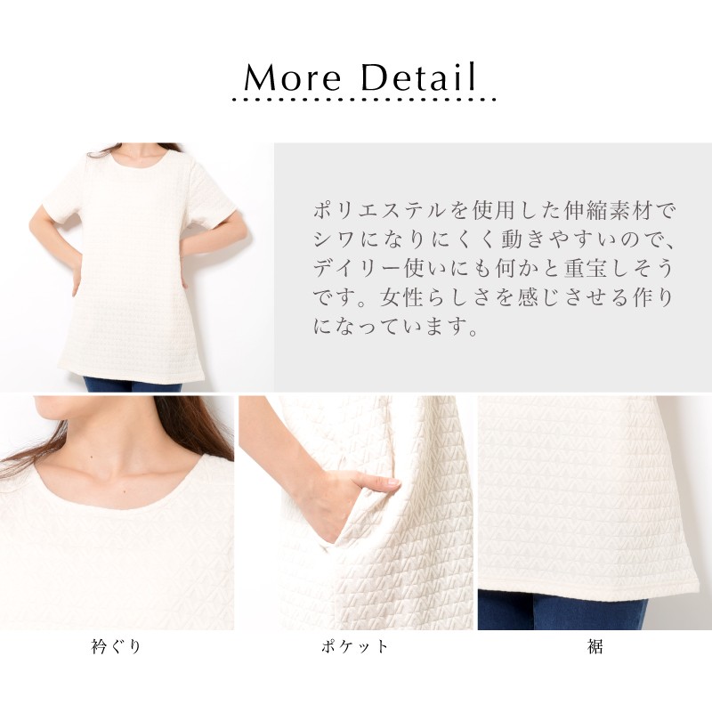 体型カバーも叶えるややゆとりのあるAラインシルエットが、女性らしさを感じさせる作りになっています。