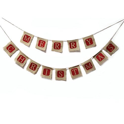 Studio : GOER Publisher : GOER Binding : Toy Product Description Description: This item is a simple and useful banner set, includes MERRY CHRISTMAS-14 letter flags.It is perfect for Christmas decoration,best for both house decoration or fixed on trees etc. Package includes: 15cm MERRY CHRISTMAS-14 letter flags Color: Red, brown. Material: Burlap. Total length: Approx. 1.4m 1.8m 0