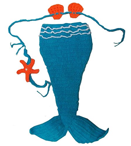 M&G House Fashion Newborn Girl Baby Handmade Crochet Knitted Photo Photography Prop Mermaid Tail Romper Outfits+1 Soft Bib