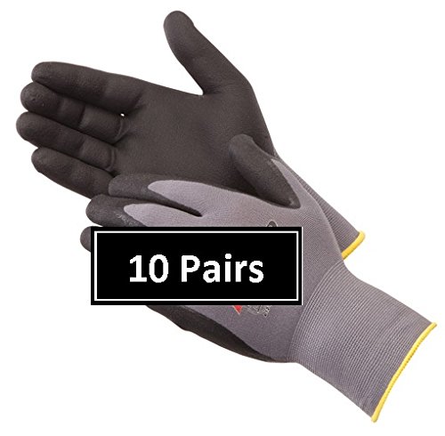 (10-Pair) S.C. 0255 Nitrile Micro-Foam Palm Coated Seamless Knit Glove with 15 gauge nylon shell Gray Size-Large