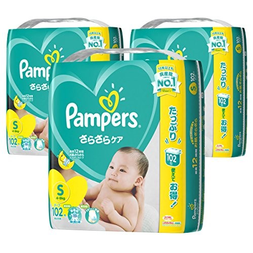 | 商品の説明 | 「【ケース販売】パンパース さらさらケア テープ Sサイズ 102枚×3パック (306枚入り)」は、ふわふわとした肌触りのコットン・シートを全面に使用した乳幼児用テープ式 Sサイズです。通気性もよく、赤ちゃんの肌をさらさらに保ちます。テープは幅広で、何度も付け直しができ、ななめにとめるとおむつがずれにくくなります。赤ちゃんのおしっこを感じ取って青に変わるおしっこお知らせラインもついています。また、うんちガードがゆるゆるうんちをしっかりとガードします。Sサイズ(4-8kgまで)の赤ちゃん用。男女共用。 |