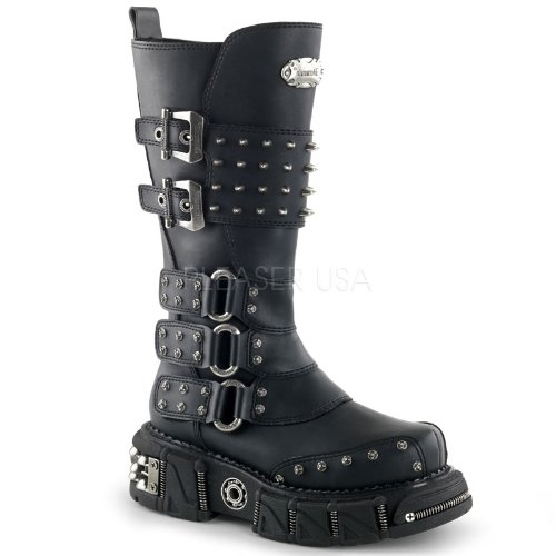 Binding : Apparel Product Description Shaft Height: Approx. 13' Tall. A Spike Embellished Wide Double Buckle Strap Veggie Boot with Side Zip. Heavy duty industrial ornamentation, and durable buckle strap make the boot an obvious choice to your favourite club or concert. 2 1/2" Thick Sole. Synthetic upper. Rubber sole. 0