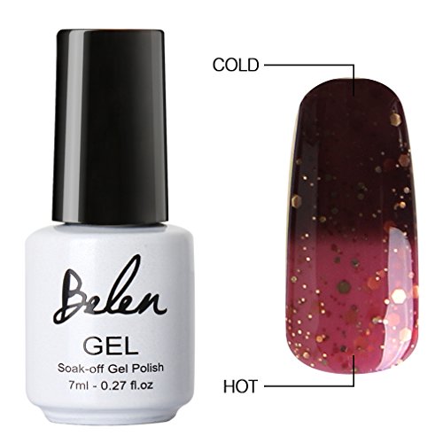 -. Binding : Misc. -. Brand : Belen -. Feature : Volume: 7ml / Features: These colors change color with heat / Product Measurement: 2.3cm X 5.5cm ( Length X Height ) / Item Included: 1PCS Color Gel / On like polish, Wears like Gel, Off in minutes -. Label : Belen -. Manufacturer : Belen -. PackageQuantity : 1 -. ProductGroup : Beauty -. ProductTypeName : BEAUTY -. Publisher : Belen -. Size : 7ml -. Studio : Belen -. Title : Belen Chameleon Temperature Colour Changing Gel Polish Soak Off Nail Art Varnish