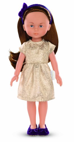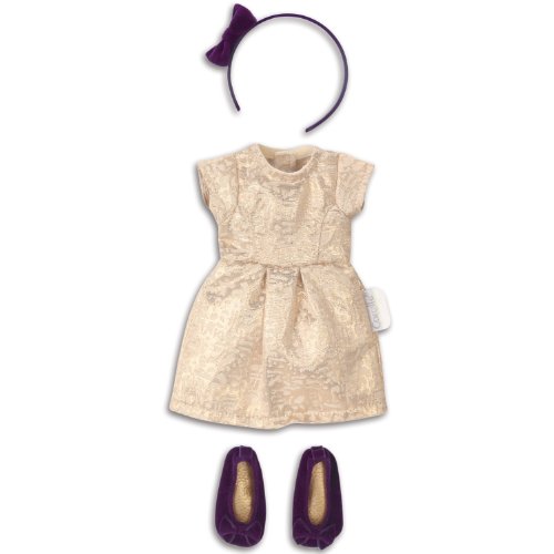 - Style your doll in this stunning gold brocade dress and purple velvet flats