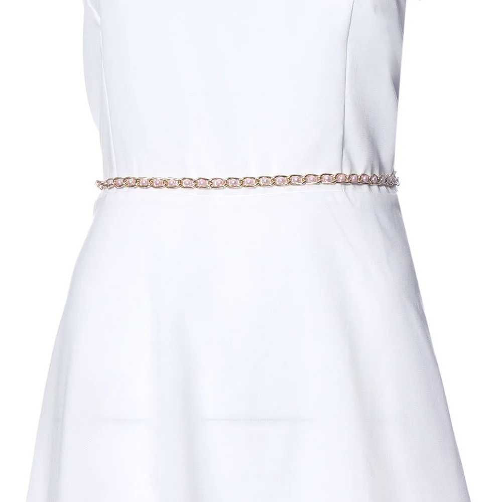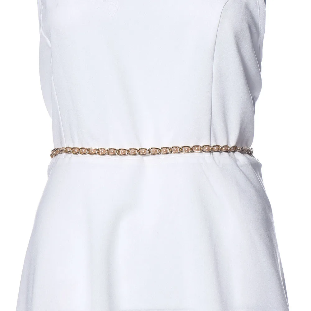 Creative 2015 Simple Style Belts Women Metal Chain Pearl Fashion Waist Belt Elegant Dress Waist Chain Belt