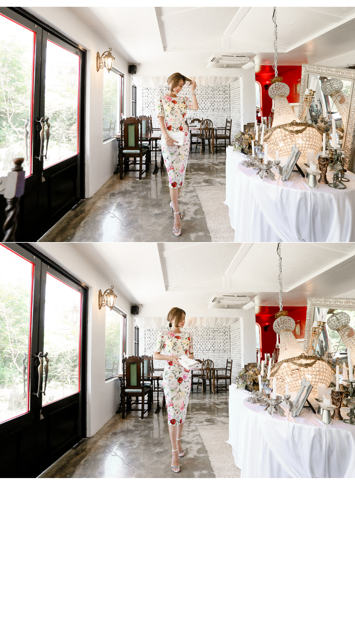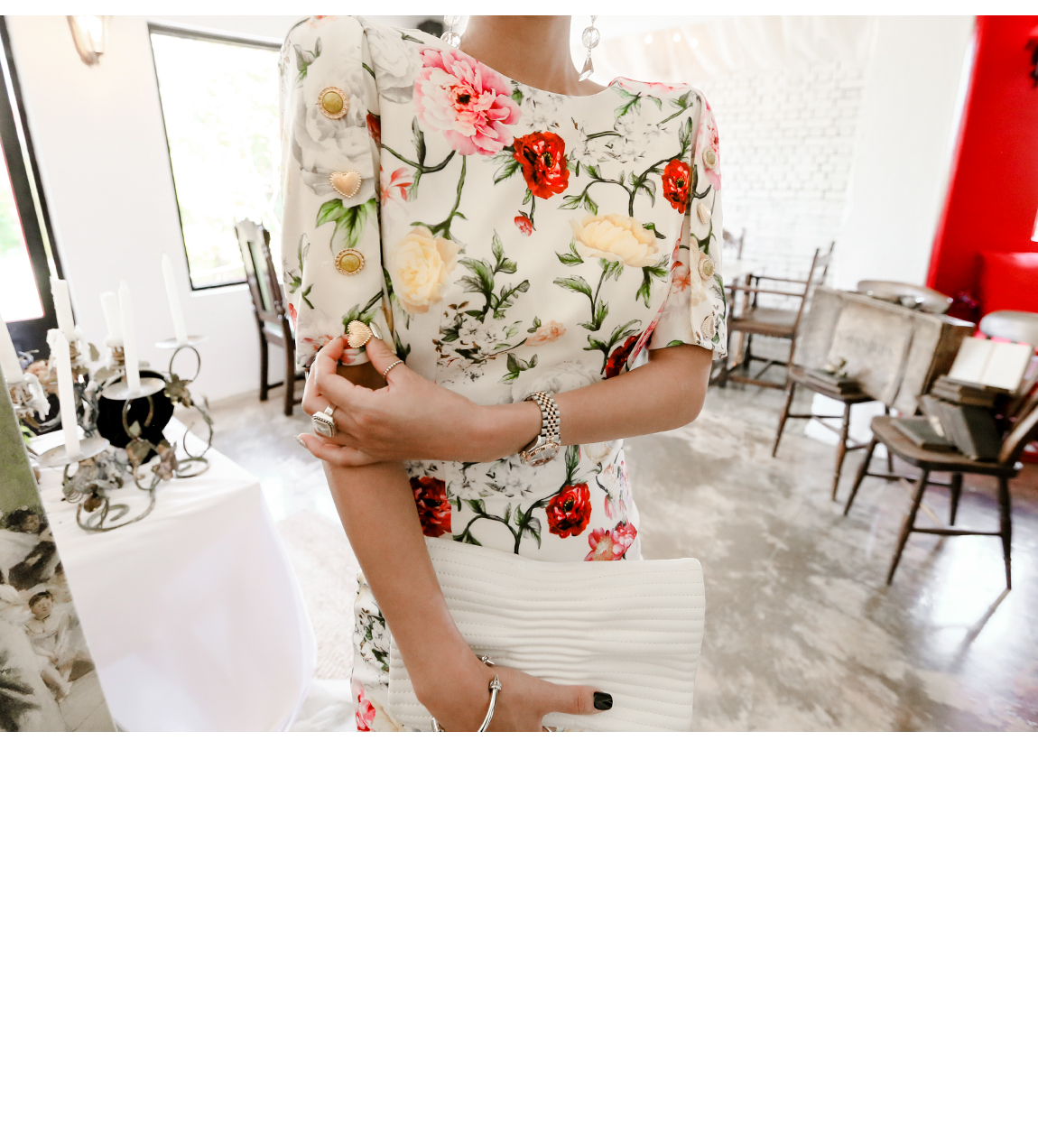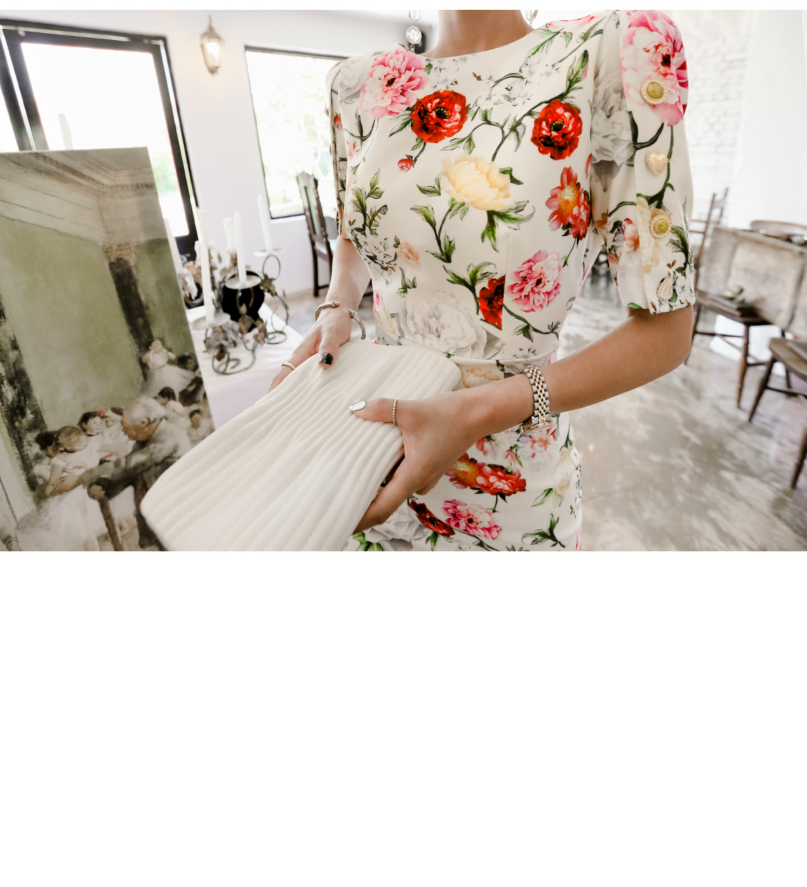 全体的なフローラルパターンでロマンチックな雰囲気を演出してくれて